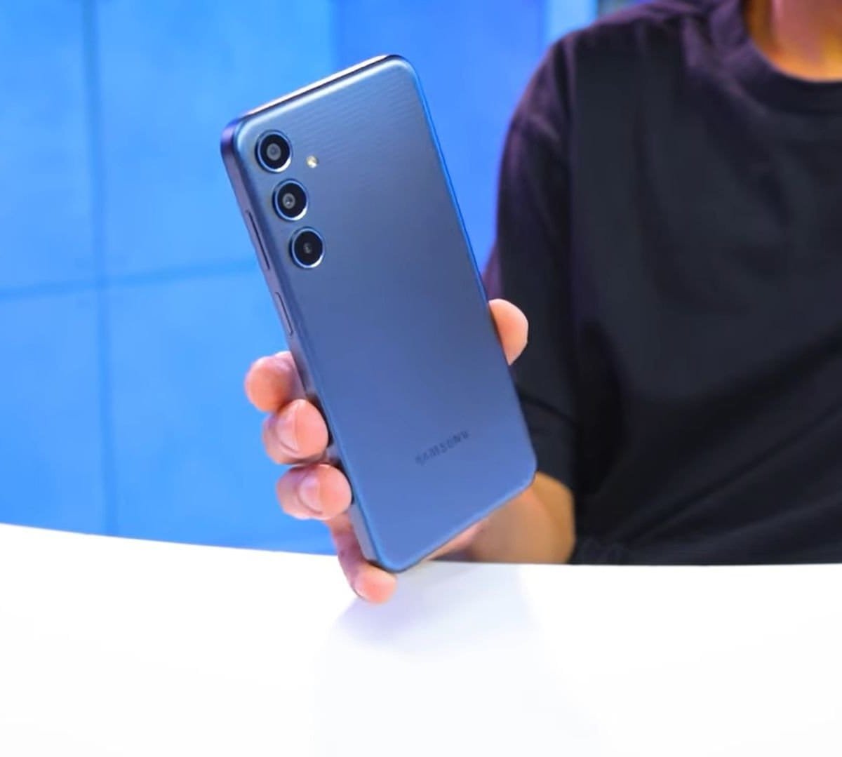 O Galaxy M35 traz aquele visual clássico que a Samsung adota nos seus celulares de entrada e intermediários básicos. Ele tem construção sólida em plástico, com uma tampa traseira mais lisa, trazendo as câmeras alinhadas, porém com os cantos curvos. Isso deixa o celular um pouco mais confortável nas mãos.