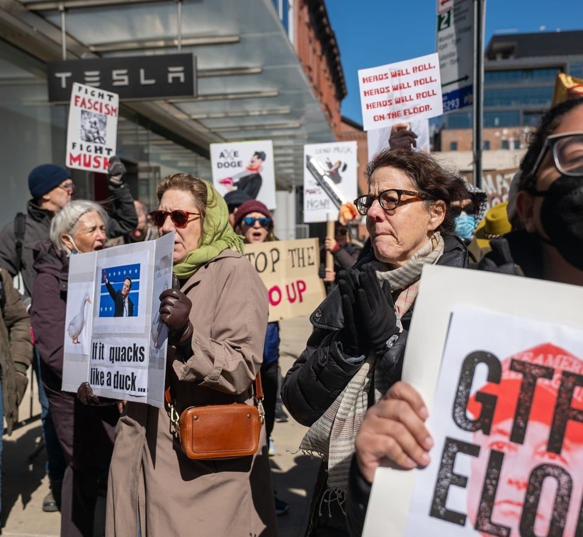 Na última semana, de acordo com a Reuters, cerca de 350 pessoas se reuniram em frente a uma loja da companhia no Oregon, em uma das muitas manifestações contra Musk. O protesto tem sido chamado de Tesla Takedown e se repetiu com uma quantidade parecida de pessoas também em Manhattan, com algumas prisões após alguns dos participantes invadirem o local.