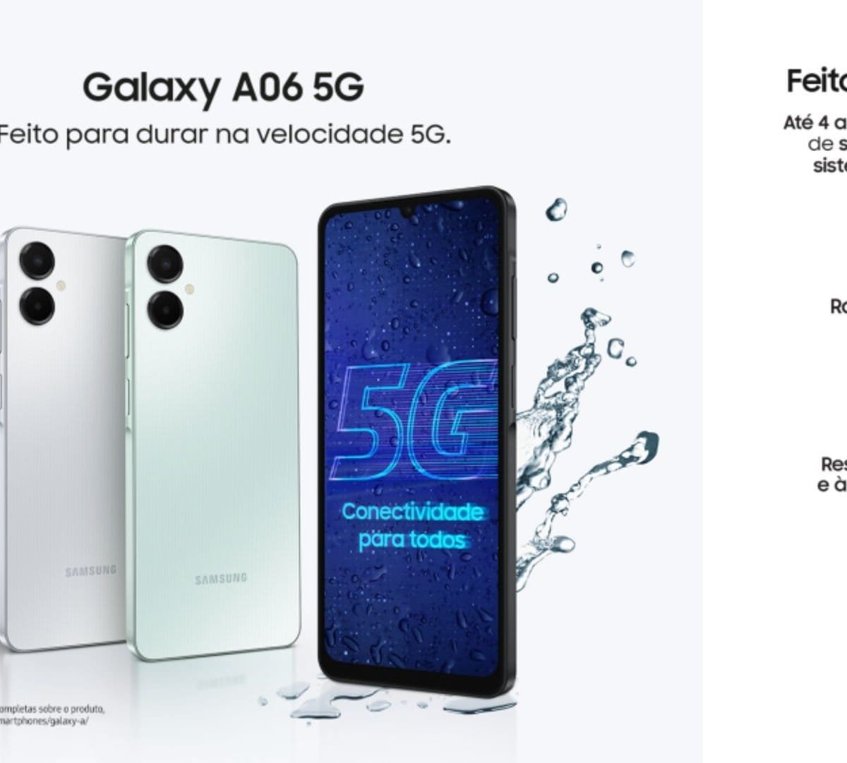 “O acesso à tecnologia transforma a maneira como as pessoas estudam, trabalham, se divertem e se conectam. O Galaxy A06 5G, o smartphone 5G mais acessível do nosso portfólio, representa mais um passo na missão da Samsung de ampliar o acesso a inovações essenciais”, afirmou o diretor de produto da divisão de Mobile Experience da Samsung Brasil, Rafael Aquino, em comunicado.