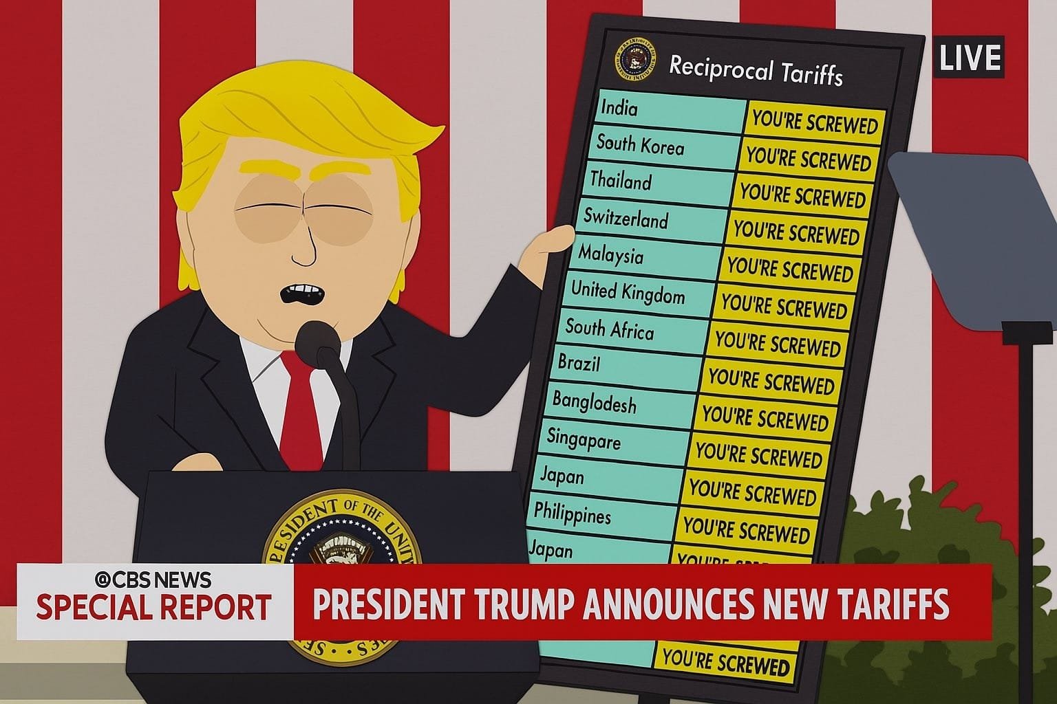 Presidente dos EUA usou um gráfico para anunciar novas tarifas de importação para diversos países nesta quarta-feira (2). Trump memes