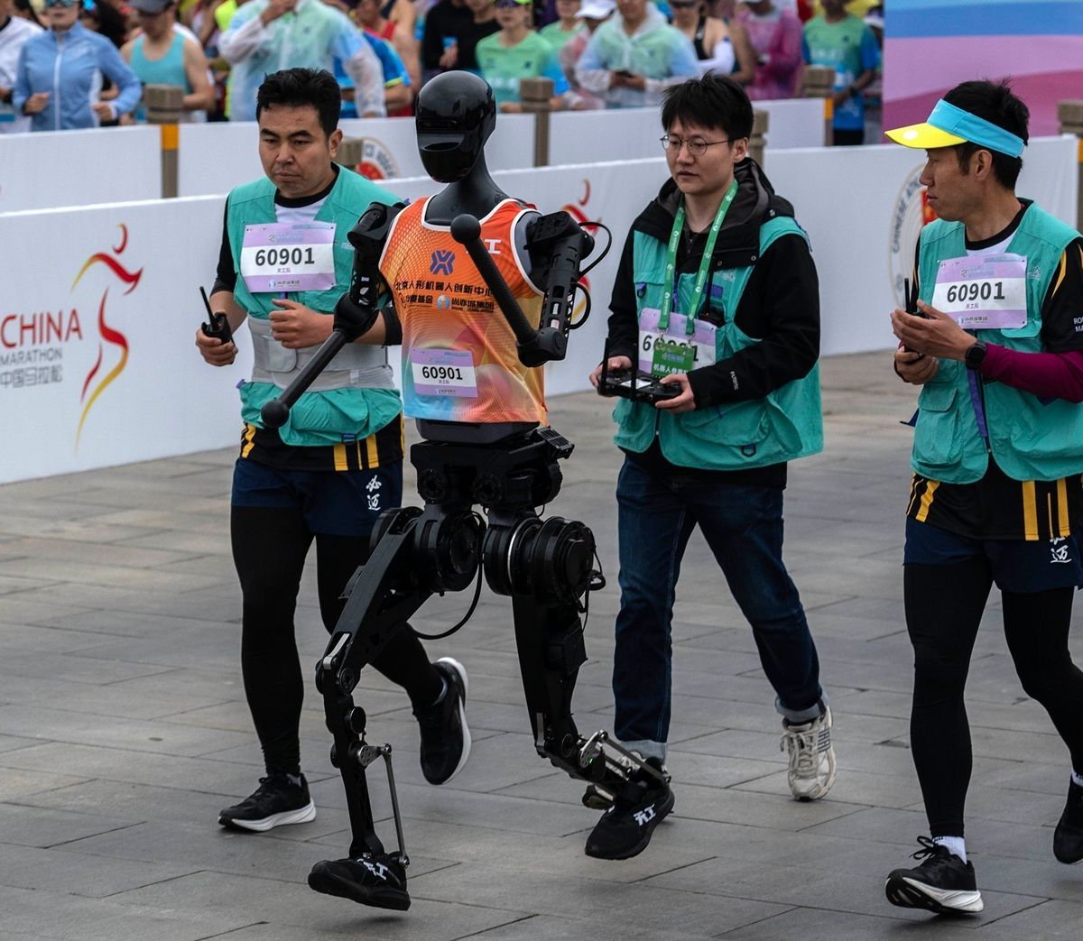 China faz primeira meia-maratona do mundo com corredores humanos e robôs